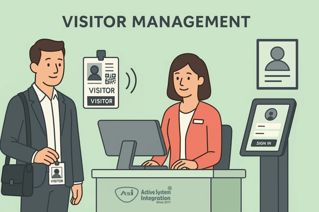 ● Biometric Integrated VMS: Improved security, fingerprint or face check-in of